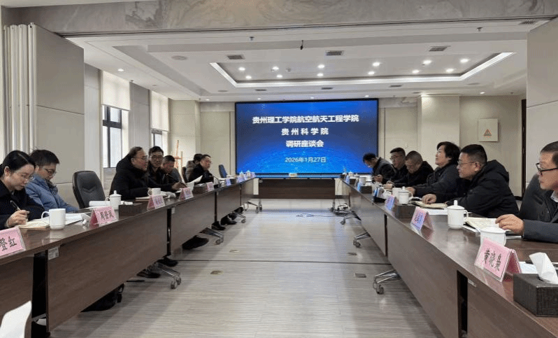 本网讯(航空航天工程学院  图/汪阳生  文/朱江会)为精准服务贵州省六大产业集群发展,特别是助力先进装备制造产业能级提升,1月27日下午,航空航天工程学院党总支书记杨鉴福、院长陈熙源率航空航天科学与技术学科“组团式”帮扶团队、航院骨干教师代表11人,赴贵州科学院开展专题调研与产学研合作对接。贵州科学院科技产业处处长何梅主持交流活动,科学院科研管理处、冶金化工研究所、新材料研究开发基地、电子工业研究所、机电研究设计院、...