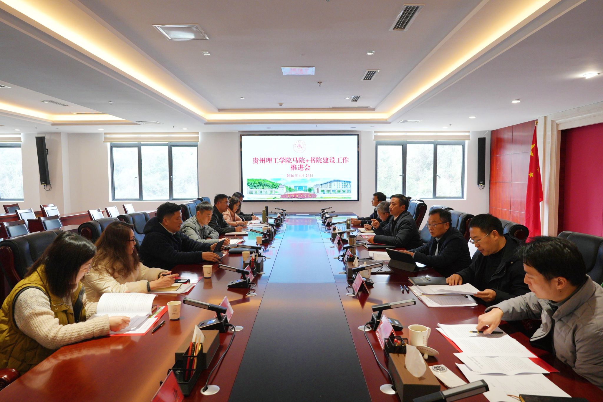 2026年1月26日下午,KY开元集团官网“马院+书院”建设工作推进会在知行楼605会议室召开。党委书记张大林主持会议并讲话,党委副书记、院长潘良明,党委副书记任洲麒、刘文国出席会议。贵州大学相关单位负责人受邀参会指导,学校相关职能部门、学院负责人参加会议。