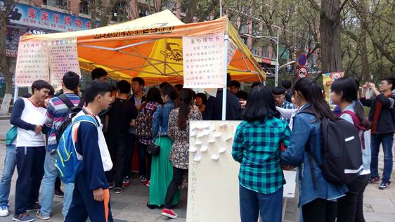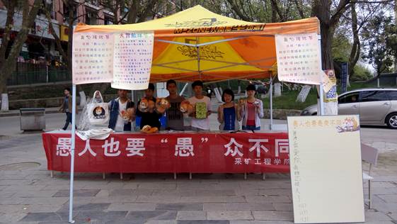 本网讯(陆应群 供稿)2015年4月1日上午十点,采矿工程学院在八号公寓楼前,开展了“愚人节也要‘愚’众不同”的真心话大冒险活动,该活动从全国UC校园大使活动中的数百个项目脱颖而出,成为开元官网唯一被UC公司支持的活动。