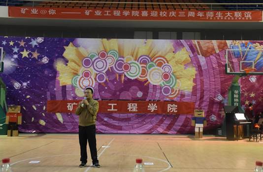 正值KY开元集团官网建校三周年之际,4月28日19时,由矿业工程学院主办,团总支、学生会承办的矿业工程学院喜迎校庆三周年——矿业@你师生大联欢活动在体育馆拉开帷幕。院党总支副书记詹凤合、副院长张开智以及学院500余名师生欢聚一堂,为学校送祝福。