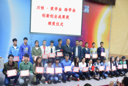 下午四点半,川恒奖学金、助学金、创新创业成果奖颁奖仪式在逸夫小报告厅举行,共计50名同学获得奖项,董事长吴海斌为同学们颁发证书并讲话,他表示愿意提供更多的平台给年轻人,鼓励同学们认真学习,日后欢迎大家为川恒贡献自己的一份力量。化工131班杨红义同学代表获奖学生发言并向川恒致上最诚挚的感谢。随后,副总工程师马永强针对磷化工的前景、分类以及工业流程为同学们献上了一场精彩的讲座,同学们不仅感受到了化工产业、行业的魅力,也对磷这一元素也有了更加深入了解。