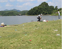 在两湖周围存游客在烧烤、钓鱼时留下大量的垃圾及附近居民生活垃圾随处乱丢现象,造成严重的水体污染。