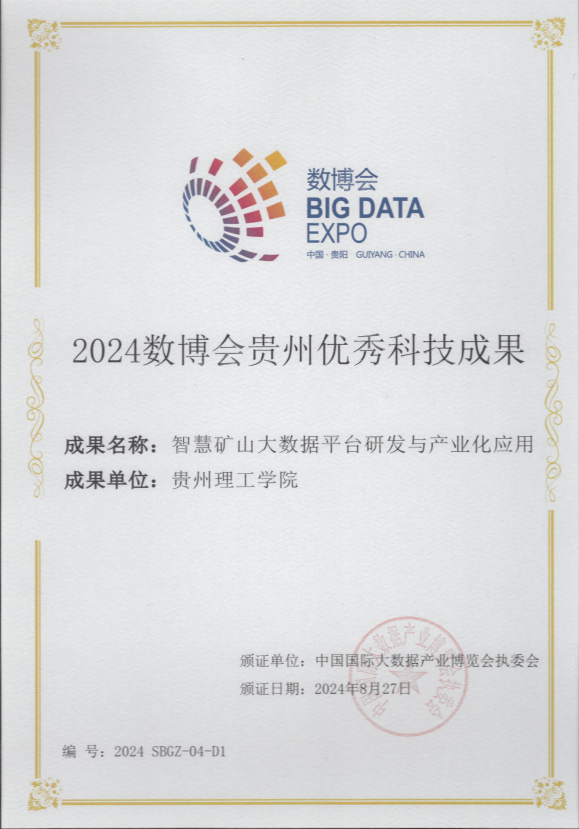 在8月27日的数博会领先科技成果发布会上,公布了10项领先科技成果和57项优秀科技成果。学校主持完成的“智慧矿山大数据平台研发与产业化应用”入选2024数博会贵州优秀科技成果,实现科研新突破。该项目旨在通过大数据治理,实现矿山生产监控、安全风险管控和高效运维,有效提升矿山的安全性与生产效率。该平台已在国内多家矿山成功应用,取得了显著的经济和社会效益。